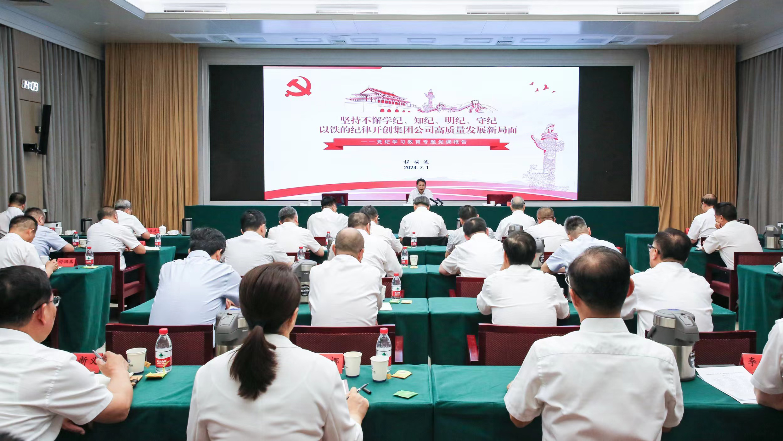 7月1日,在中国共产党成立103周年之际,开云官方端网页版登录入口党组书记、董事长程福波以《坚持不懈学纪、知纪、明纪、守纪  以铁的纪律开创集团公司高质量发展新局面》为题,向全集团广大党员干部讲授党纪学习教育专题党课,强化纪律意识,进一步推动全集团党纪学习教育走深走实。集团公司总经理、党组副书记刘大山主持,纪检监察组组长、党组成员陈学钏宣读表彰集团公司2022-2023年度优秀共产党员、优秀党务工作者和先进基层党组织的决定。