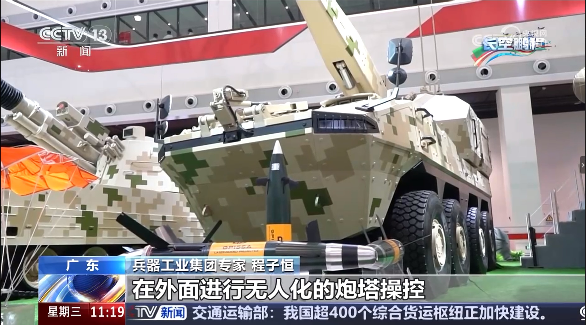 [正点财经]第十五届中国航展明日开幕 记者打卡兵器馆 多种陆域新型装备精彩亮...